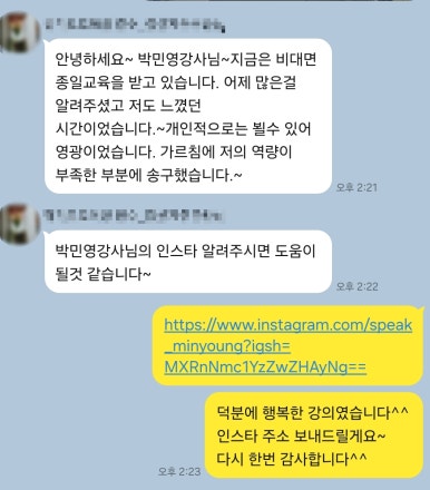<경기도교육청 강사 스피치 베이직/인텐시브 특강> 참여 수강생의 후기