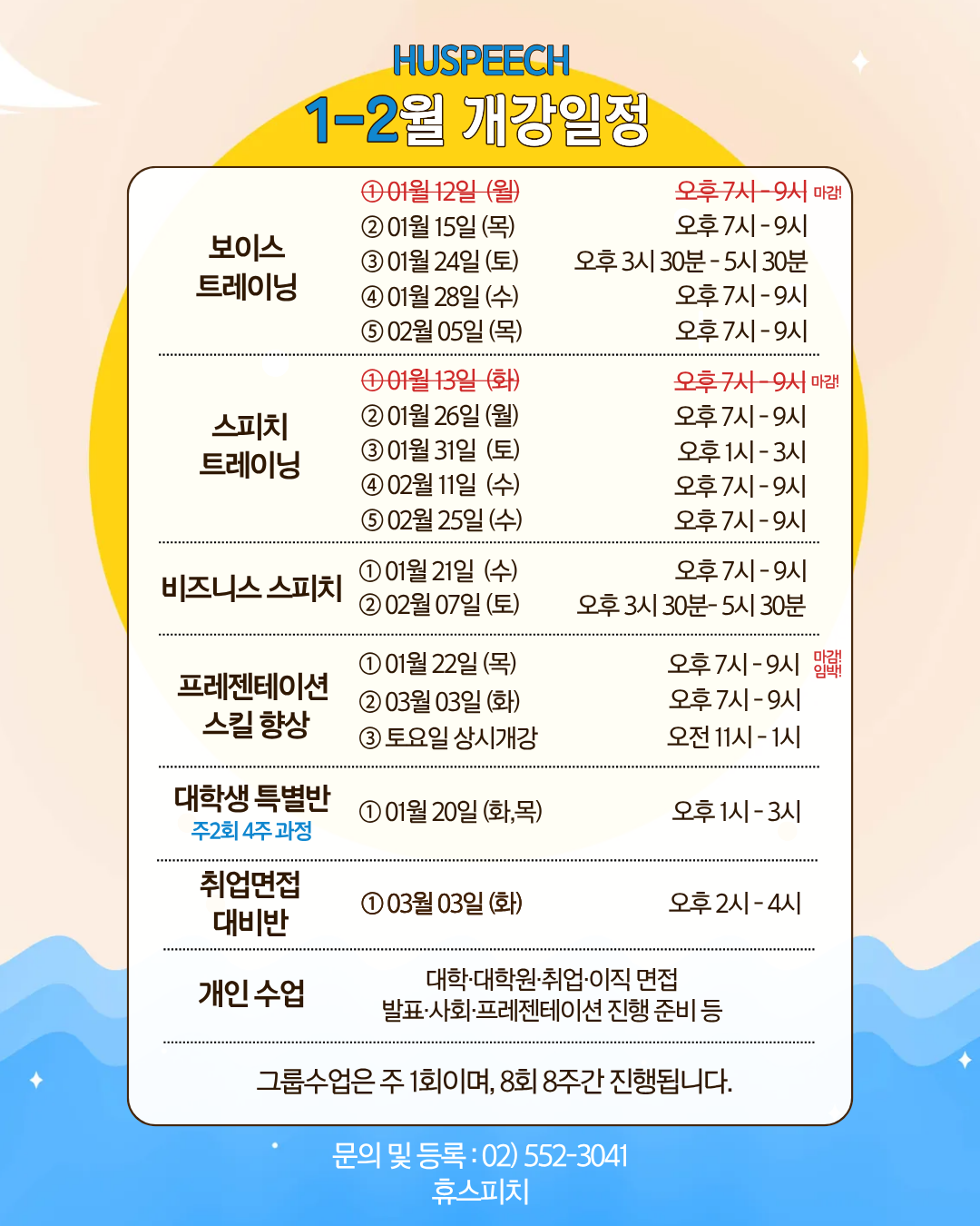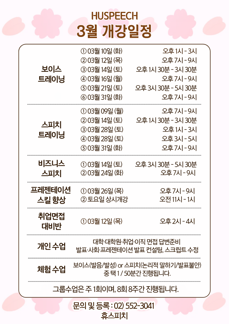 업체명 : 휴스피치학원대표자 : 박민영 I 대표전화 : 02)552-3041