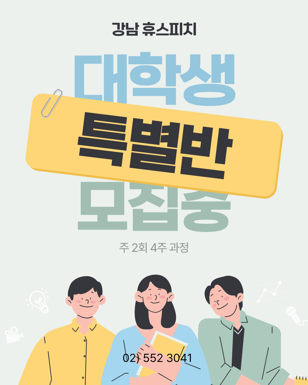 사업자번호 : 823-94-00116 I 개인정보보호책임자 : 박민영 I 주소 : 강남구 테헤란로 4길 27, 4층 휴스피치